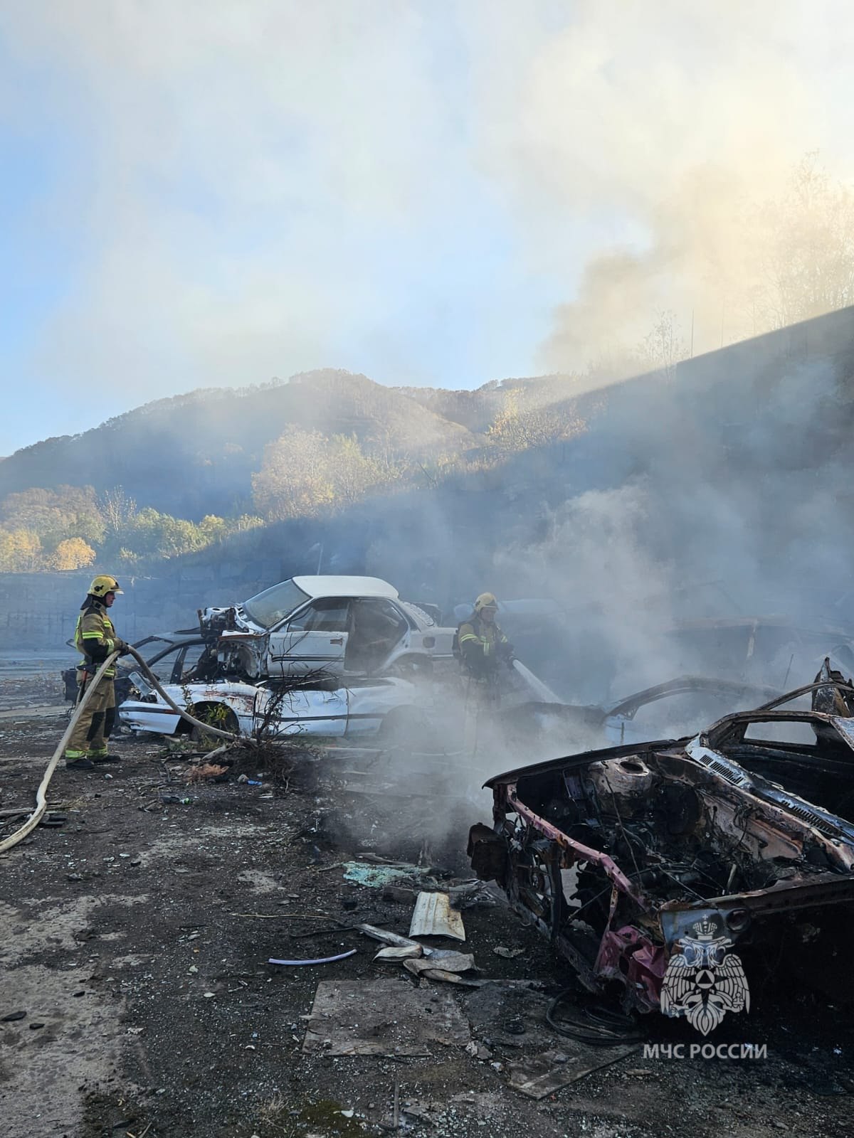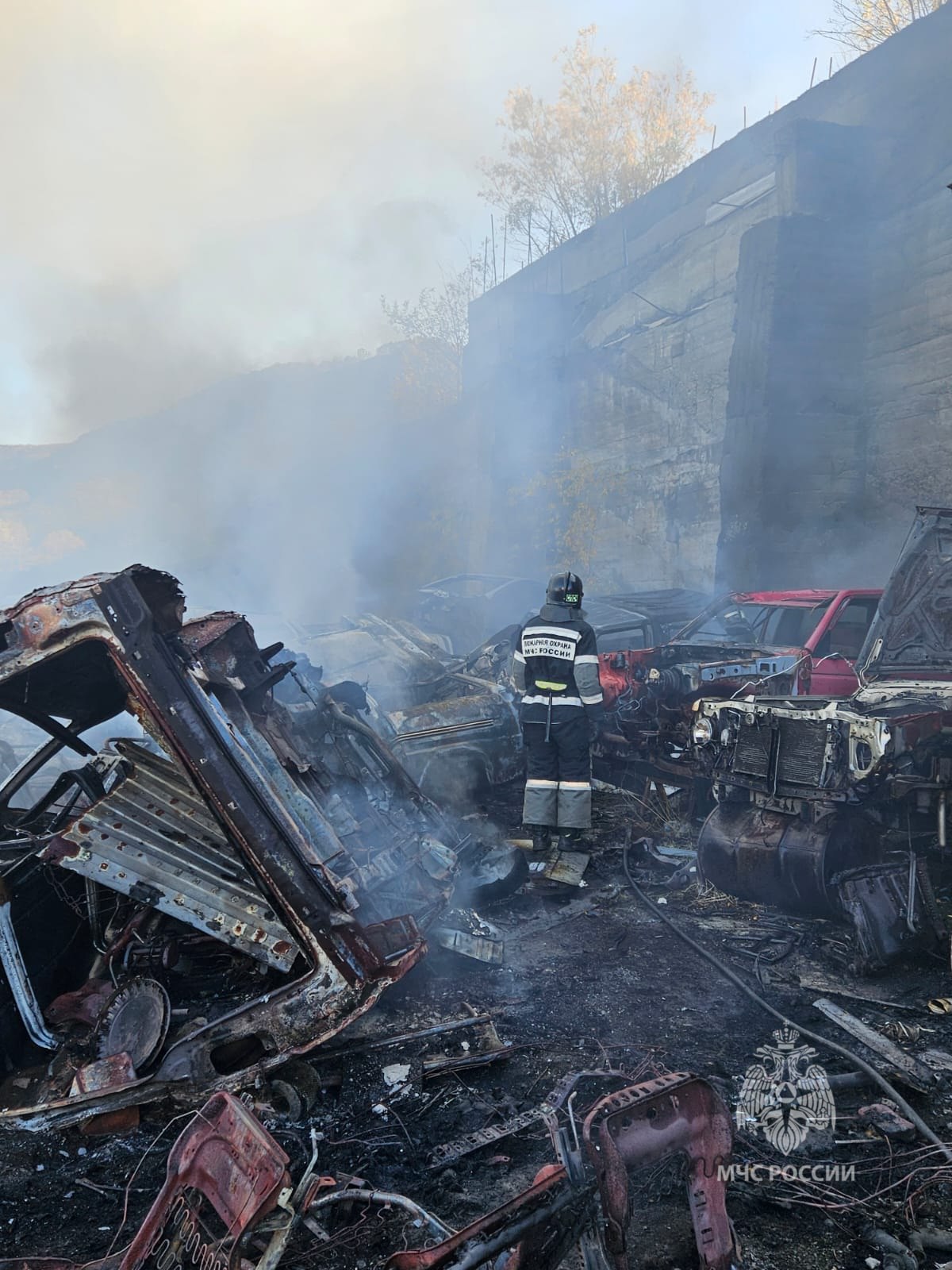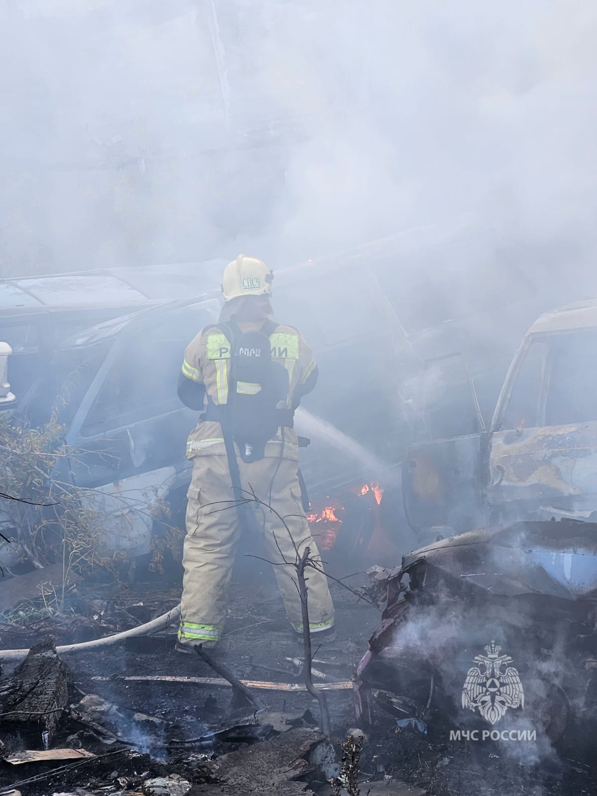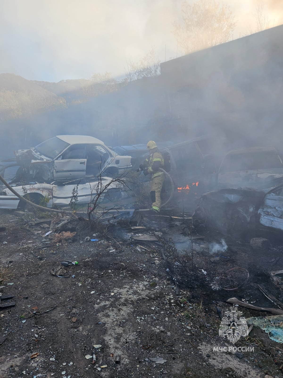 Прямо сейчас сотрудники специализированной пожарно-спасательной части МЧС России тушат возгорание в районе улицы Пограничной, 60/2. Горят заброшенные автомобили.