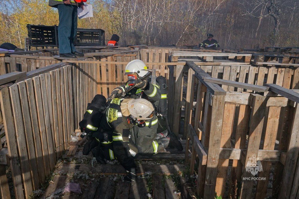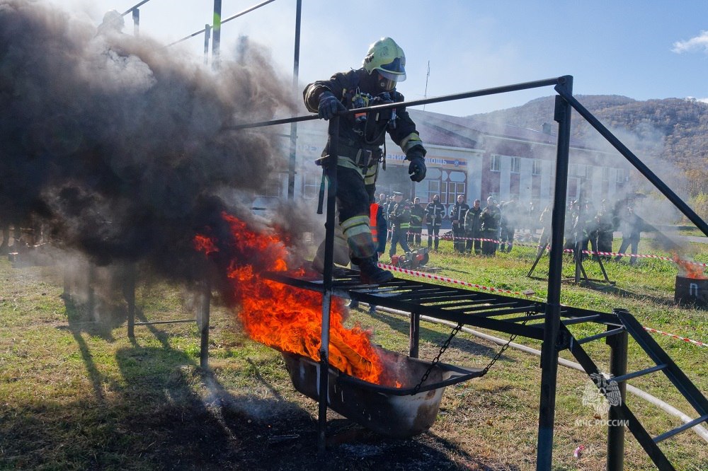 Состязания на лучшее звено газодымозащитной службы прошли на базе специального управления федеральной противопожарной службы №79 МЧС России на территории города Вилючинска.
