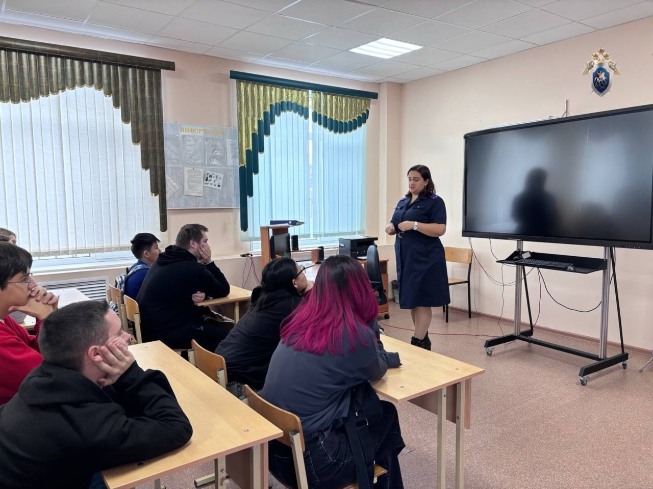 Помощник следователя Мильковского межрайонного следственного отдела регионального управления СК России Екатерина Сереброва встретилась с учениками Камчатского сельскохозяйственного техникума.