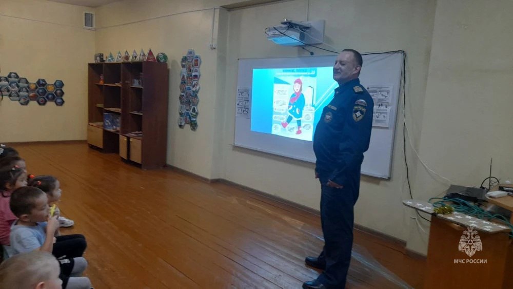 Малышам о безопасности на льду: инспектор ГИМС провел урок в детском саду