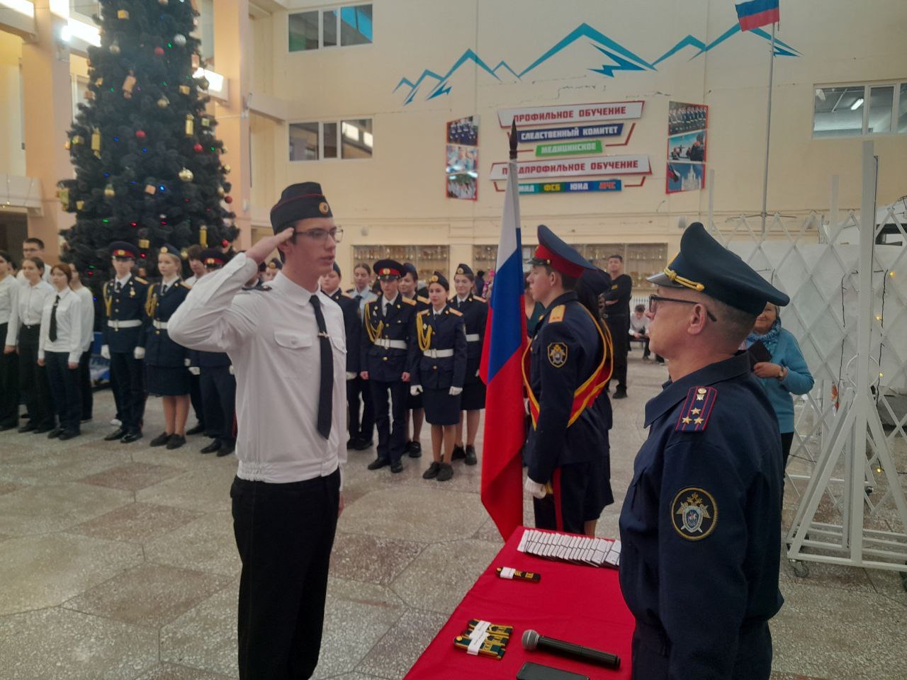 Сотрудники следственного управления Следственного комитета Российской Федерации по Камчатскому краю поздравили с Новым годом коллектив подшефной школы и вручили кадетам внеочередные звания