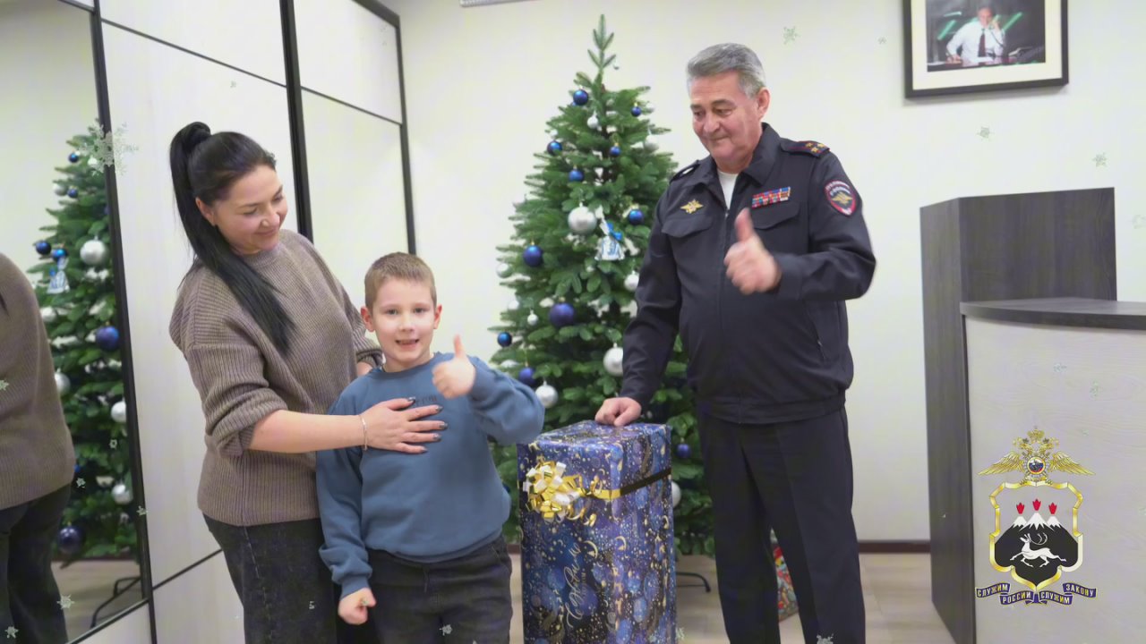 В рамках акции «Ёлка желаний» начальник УМВД России по Камчатскому краю генерал-майор полиции Иван Кокухин исполнил желание 7-летнего Александра.