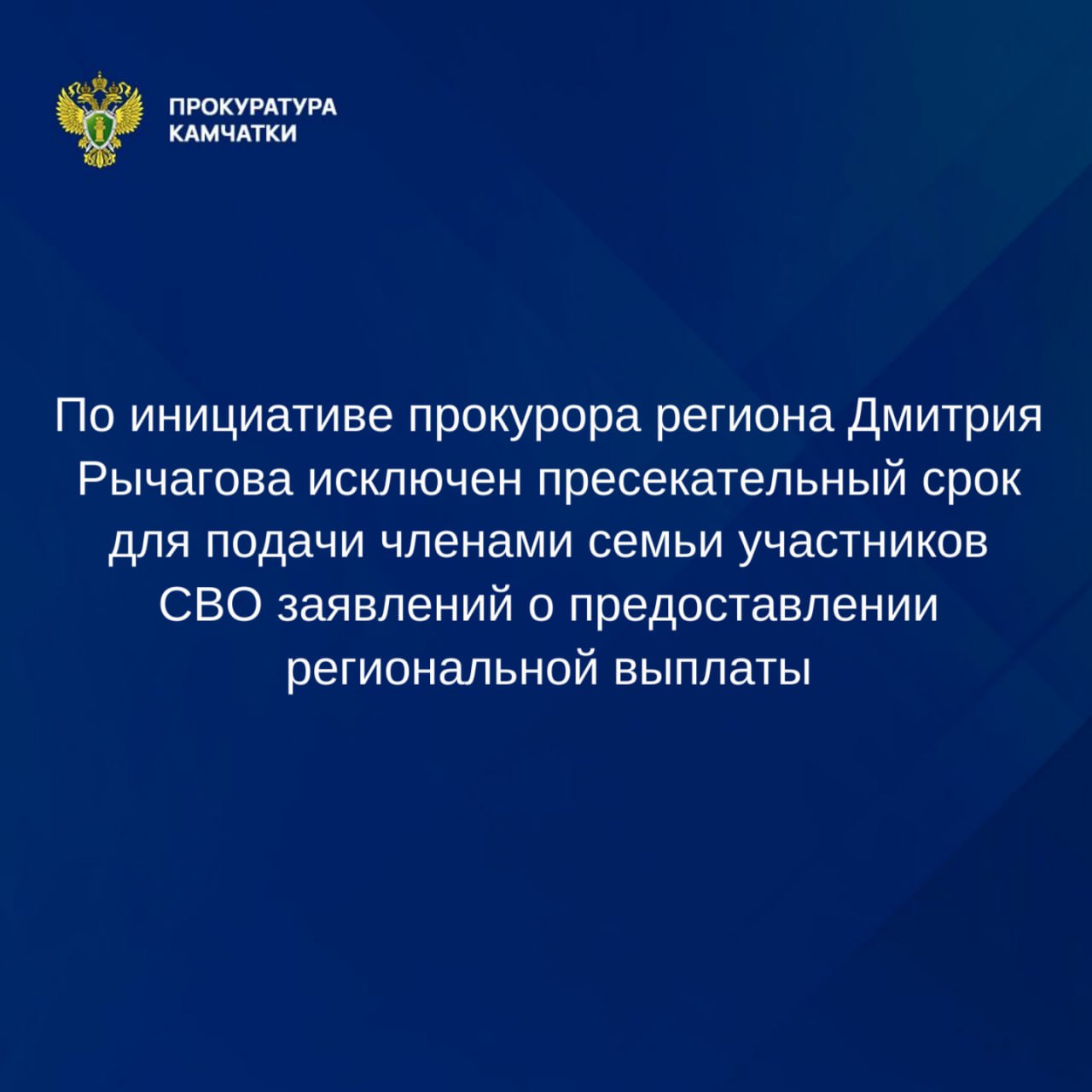 Прокуратура Камчатского края во взаимодействии с органами региональной власти ведет последовательную работу по нормативному регулированию прав участников специальной военной операции и членов их семей.