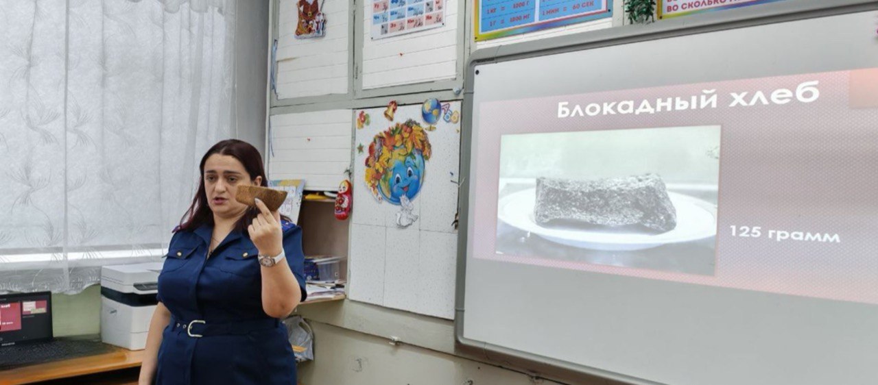 Юным слушателям рассказали о беспримерном мужестве и тяжелейших испытаниях, выпавших на долю мирных жителей осажденного города. Ключевым символом беседы стал суточный паек ленинградца 125 граммов хлеба. Школьникам не только показали, как выглядел этот спасительный кусочек, но и объяснили, из каких ингредиентов его выпекали в те суровые дни. Наглядные материалы фотографии хлебных карточек и самого блокадного хлеба помогли детям лучше понять исторический контекст.