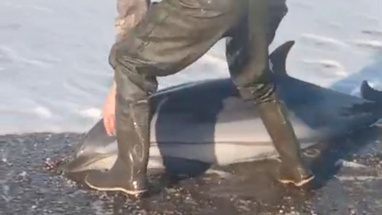 В Соболевском районе спасли дельфина, выброшенного на берег.