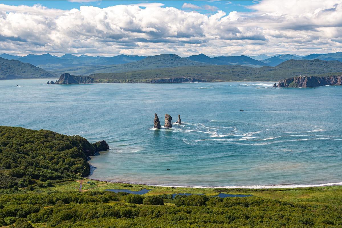 Уникальная бухта образована кальдерой древнего супервулкана, а у ее входа возвышаются скалы «Три брата», символ Петропавловска-Камчатского, достигающие высоты до 55 метров.