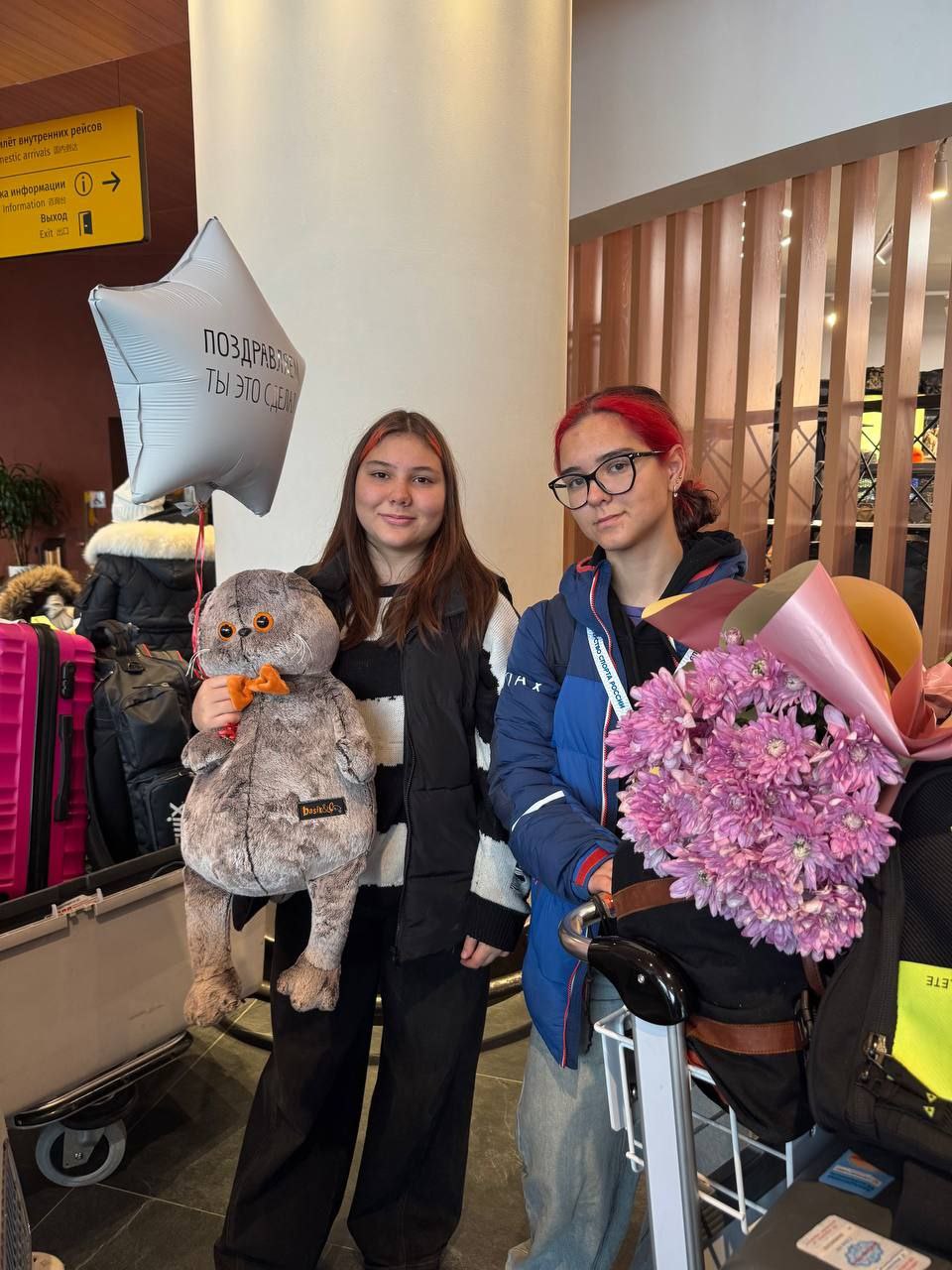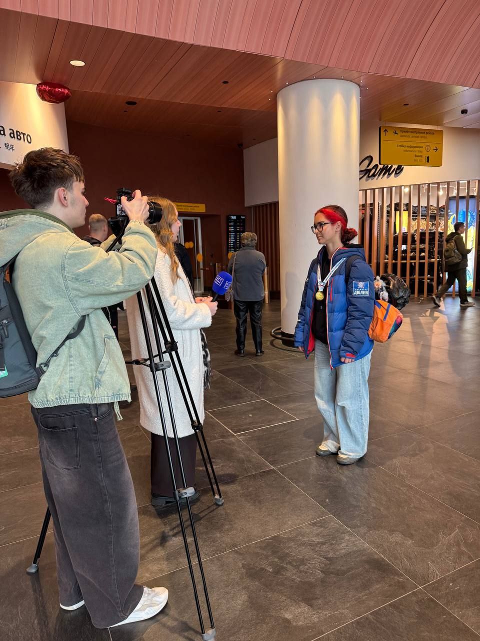 Съёмочная группа Масс Медиа встретила спортсменов в аэропорту.