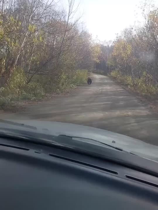 Медведь бежал по гравийной дороге в микрорайоне Завойко.