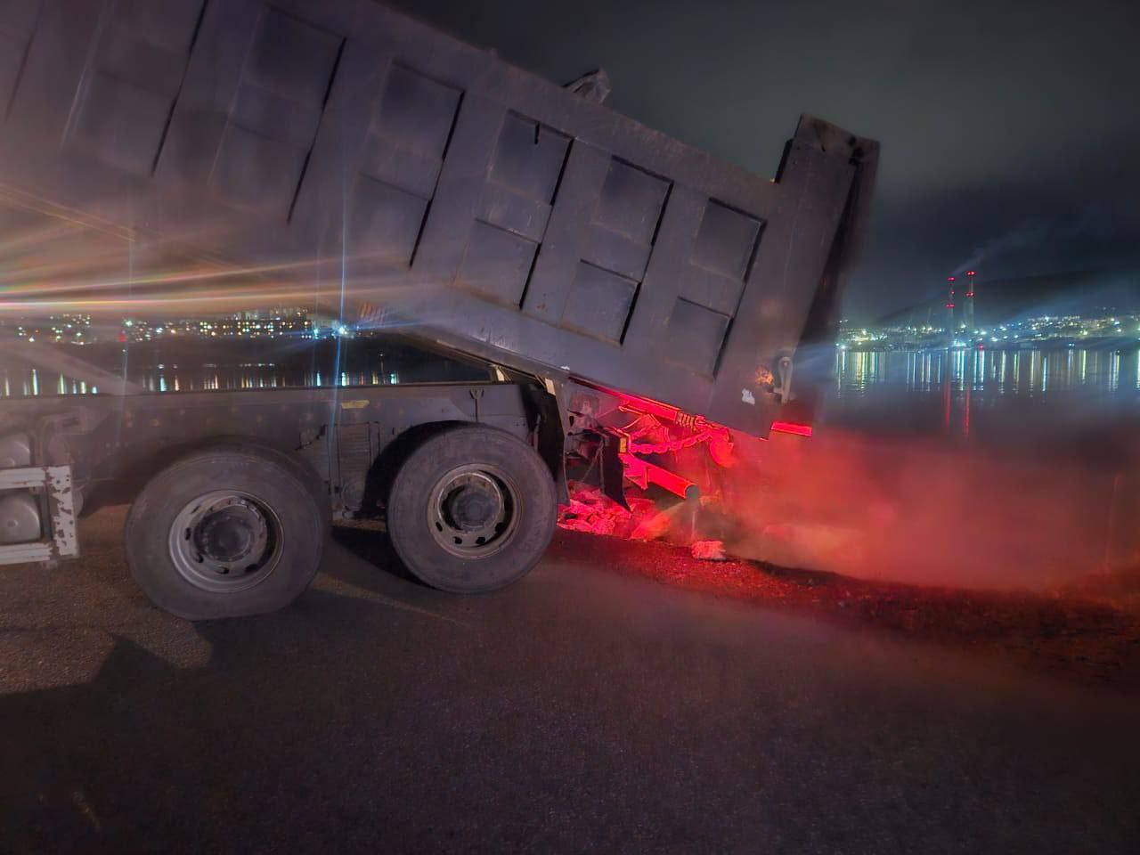 В ночь с пятницы на субботу на проблемный участок завезли восемь самосвалов крупного скального грунта и щебёночно-песчаной смеси С5.