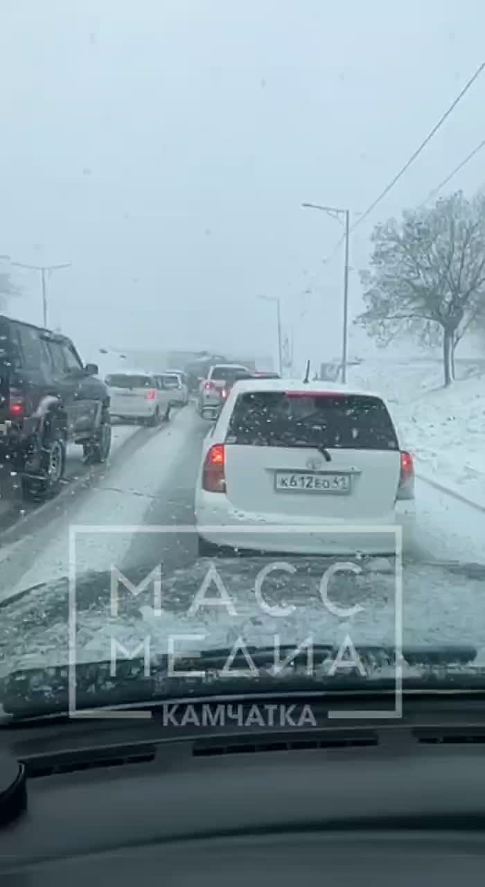 Такая же обстановка на Рябиковской. Водители маршрутных автобусов под №2 отказываются продолжать движение, так как их сносит с дороги.