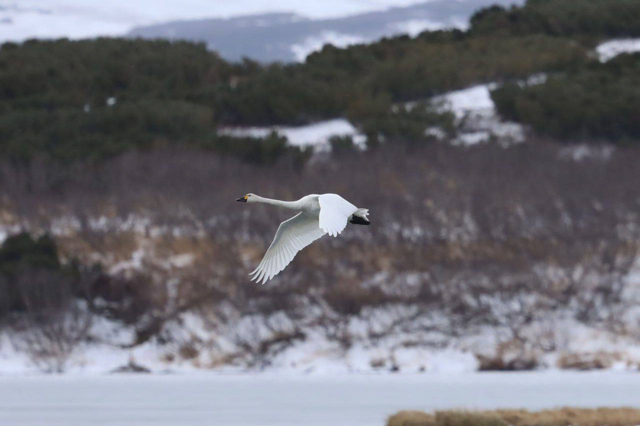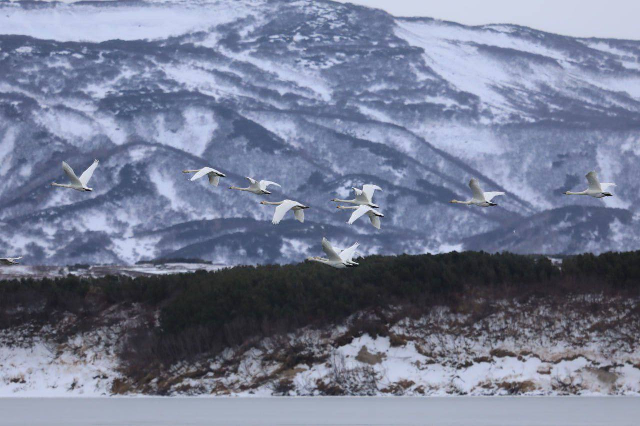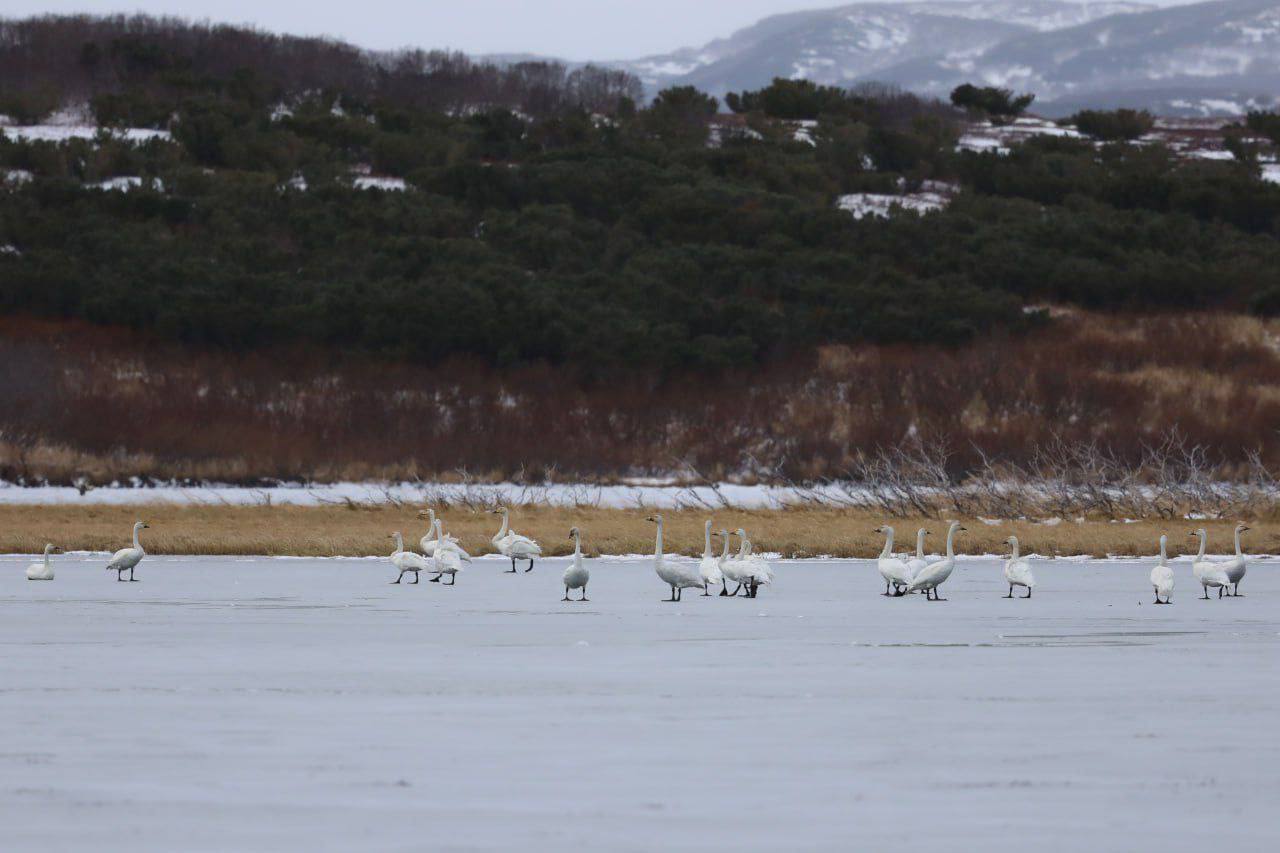 Государственные инспекторы заметили большую стаю редких краснокнижных лебедей на озере Центральное в кальдере вулкана Узон.