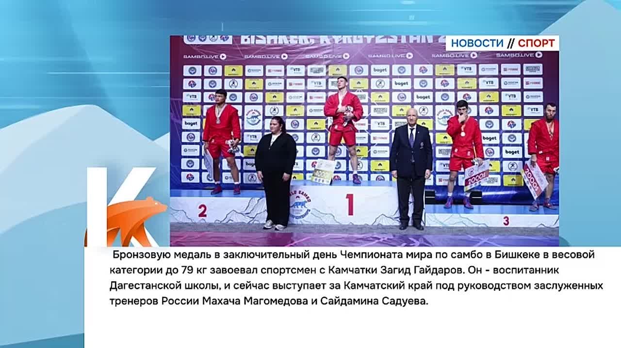Бронзовую медаль в заключительный день Чемпионата мира по самбо в Бишкеке в весовой категории до 79 кг завоевал спортсмен с Камчатки Загид Гайдаров.