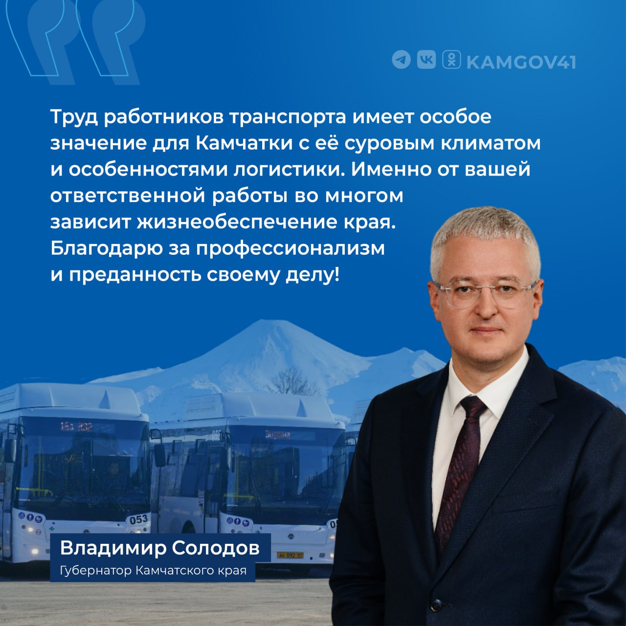 Губернатор Владимир Солодов поздравил всех сотрудников отрасли Камчатского края с праздником, подчеркнув их ключевую роль в обеспечении жизнедеятельности региона.