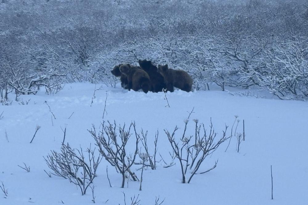 13 декабря - День медведя. По идее, к этой дате все медведи должны уже крепко спать в своих берлогах. Но в Южно-Камчатском заказнике и Кроноцком заповеднике больше десятка упитанных хищников и не думают залегать в спячку. Они продолжают активно кормиться, пользуясь щедрыми «подарками» теплой зимы.