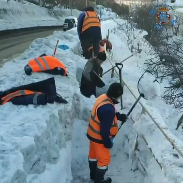 Бригады ручного труда продолжают работы по расчистке тротуаров.