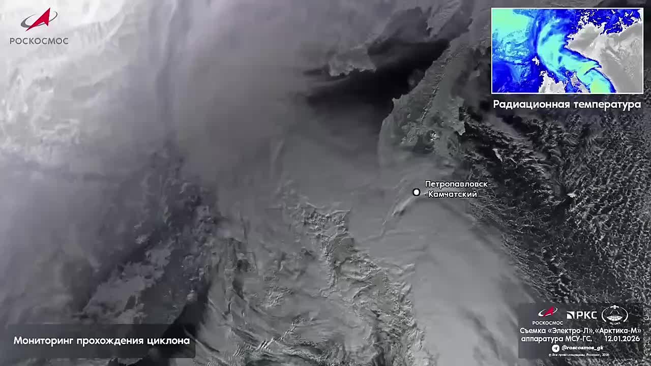 «Роскосмос» показал спутниковые кадры мощного циклона над Петропавловском-Камчатским
