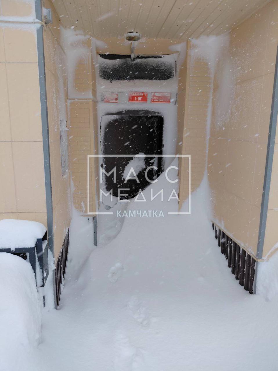 Осадки утихли, но опасность продолжает окружать жителей Петропавловска-Камчатского. На крышах домов и козырьках большие скопления снега и наледи, а вход в подъезд похож на туннель.