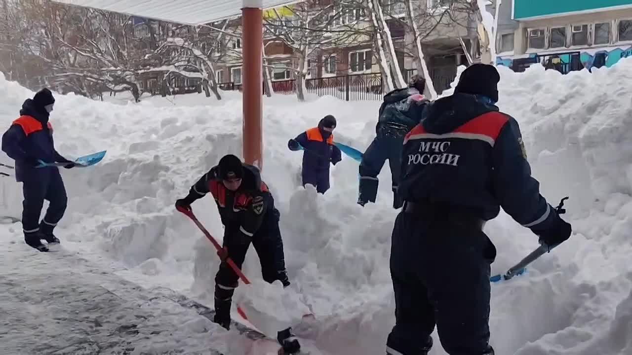 Сегодня настоящая команда спасения получилась у Детского сада №25. Сотрудники МЧС России совместно с волонтерами природного парка «Вулканы Камчатки» вышли на борьбу с сугробами. Пока коммунальные службы работают на главных магистралях, эти ребята взяли на себя расчистку территории дошкольного учреждения.