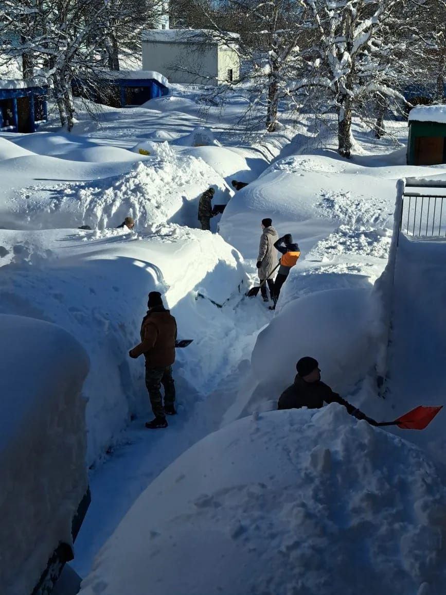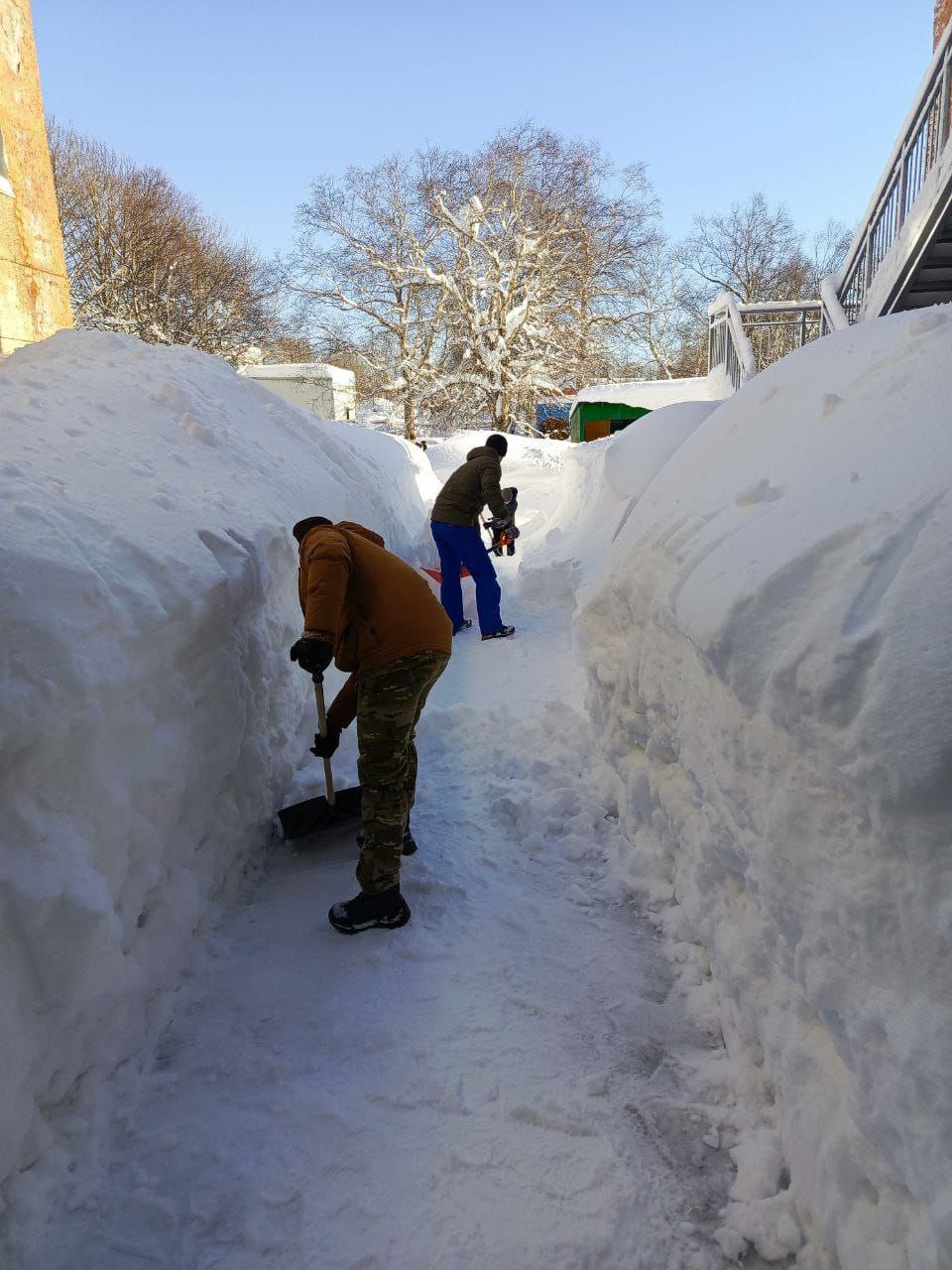 Военнослужащие Камчатки помогли расчистить от снега детский сад № 37 «Белочка» в поселке Вулканный