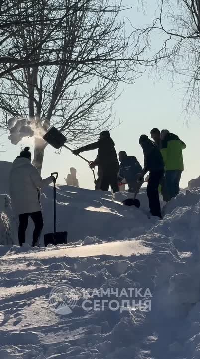 17 января, после сильных циклонов, около 20 человек с улицы Заводская, 21 в Петропавловске-Камчатском вышли копать дорогу к дому.