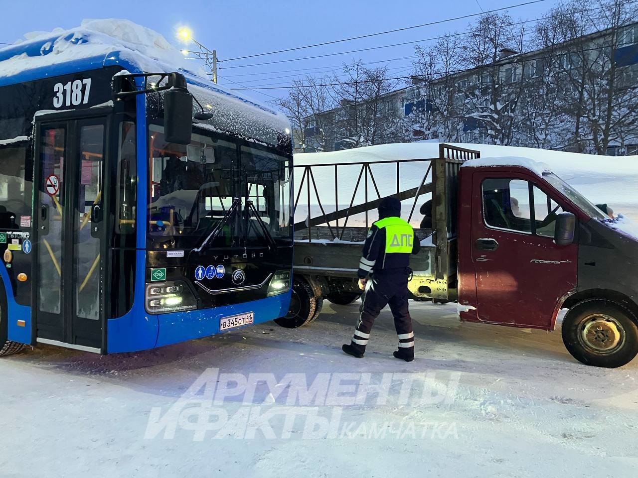 На остановке АЗС не разъехались автобус №22 и грузовичок «Соболь»