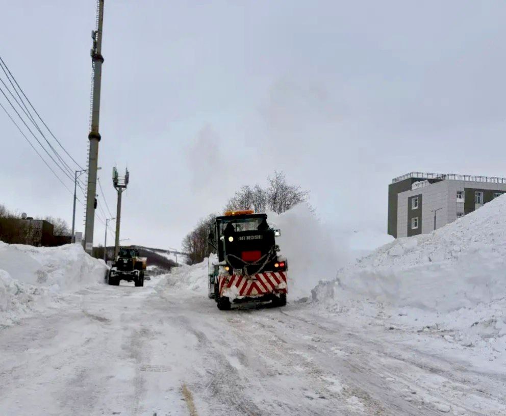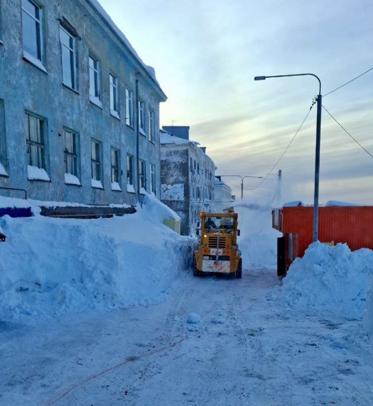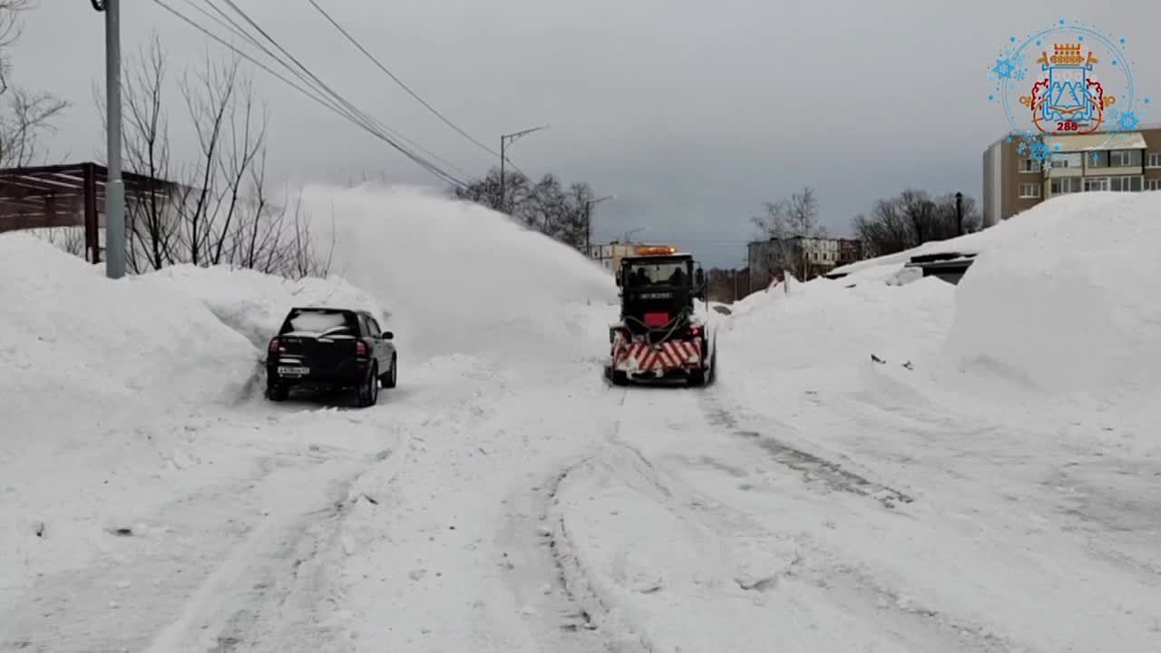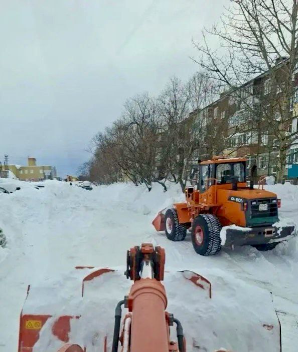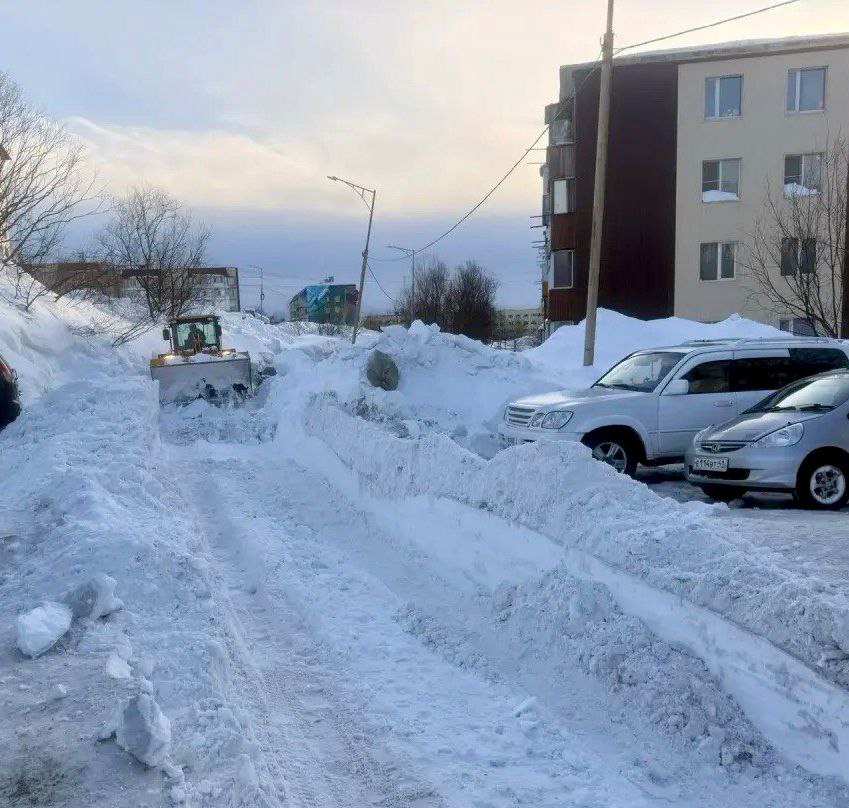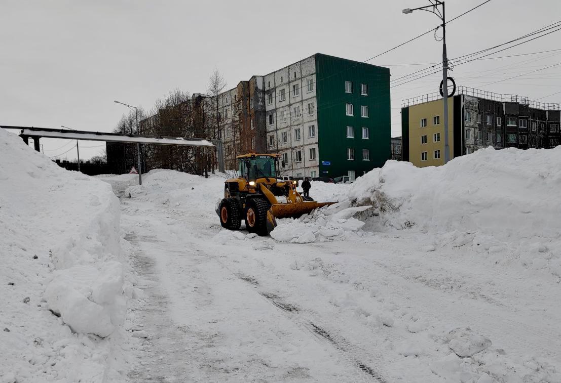 Дорожные службы расчищают внутриквартальные проезды и придомовые территории. Вывозят снег.