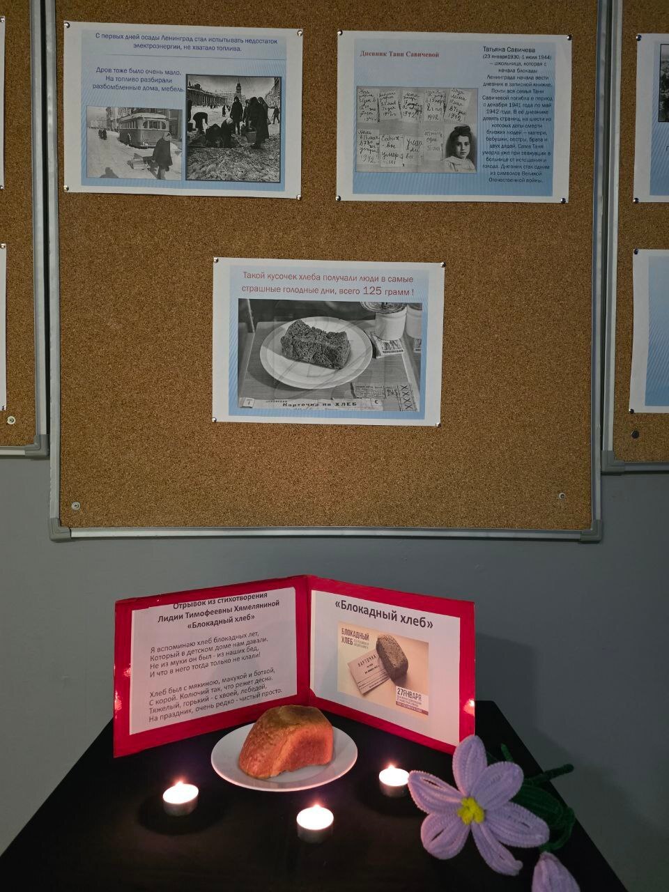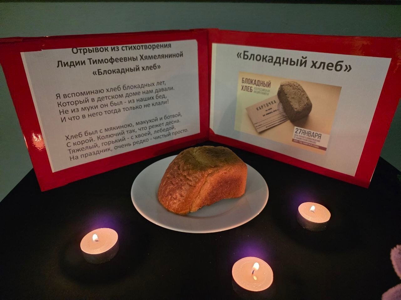 В средней школе № 3 имени Пушкина педагоги показали ребятам символические 125 граммов хлеба. Педагоги рассказали о важности сохранения исторической памяти.