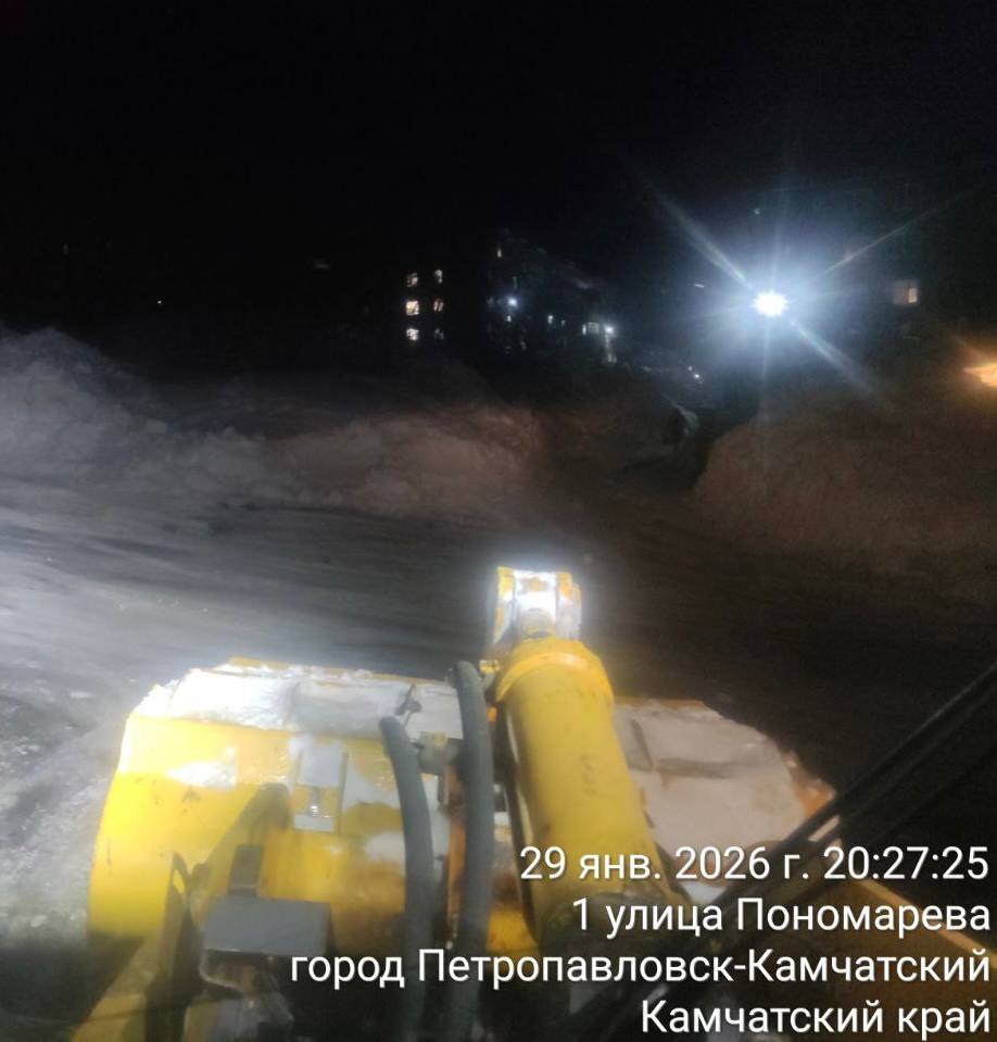 В Петропавловске-Камчатском дорожные службы в ночную смену продолжили комплекс мероприятий по ликвидации последствий циклона.