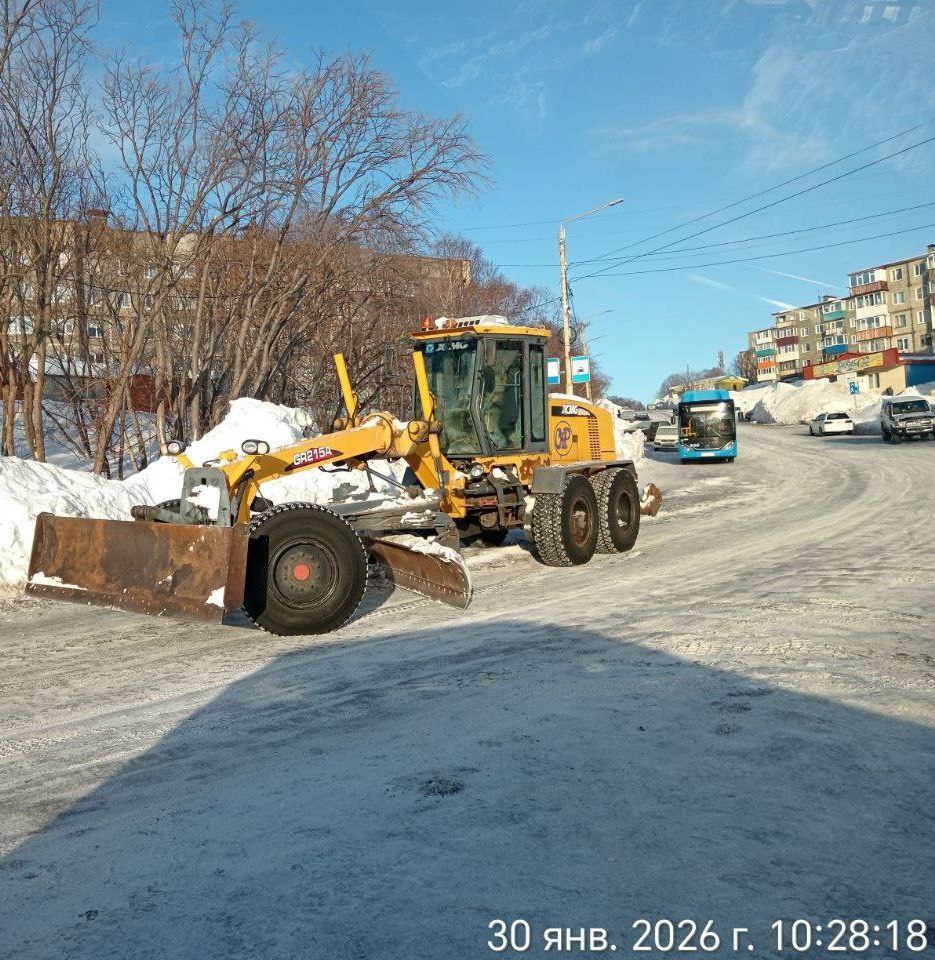 Проведены работы по расчистке территорий в частном секторе на ул. Читинская. На Петропавловском шоссе осуществлено снятие наката на магистральной дороге.