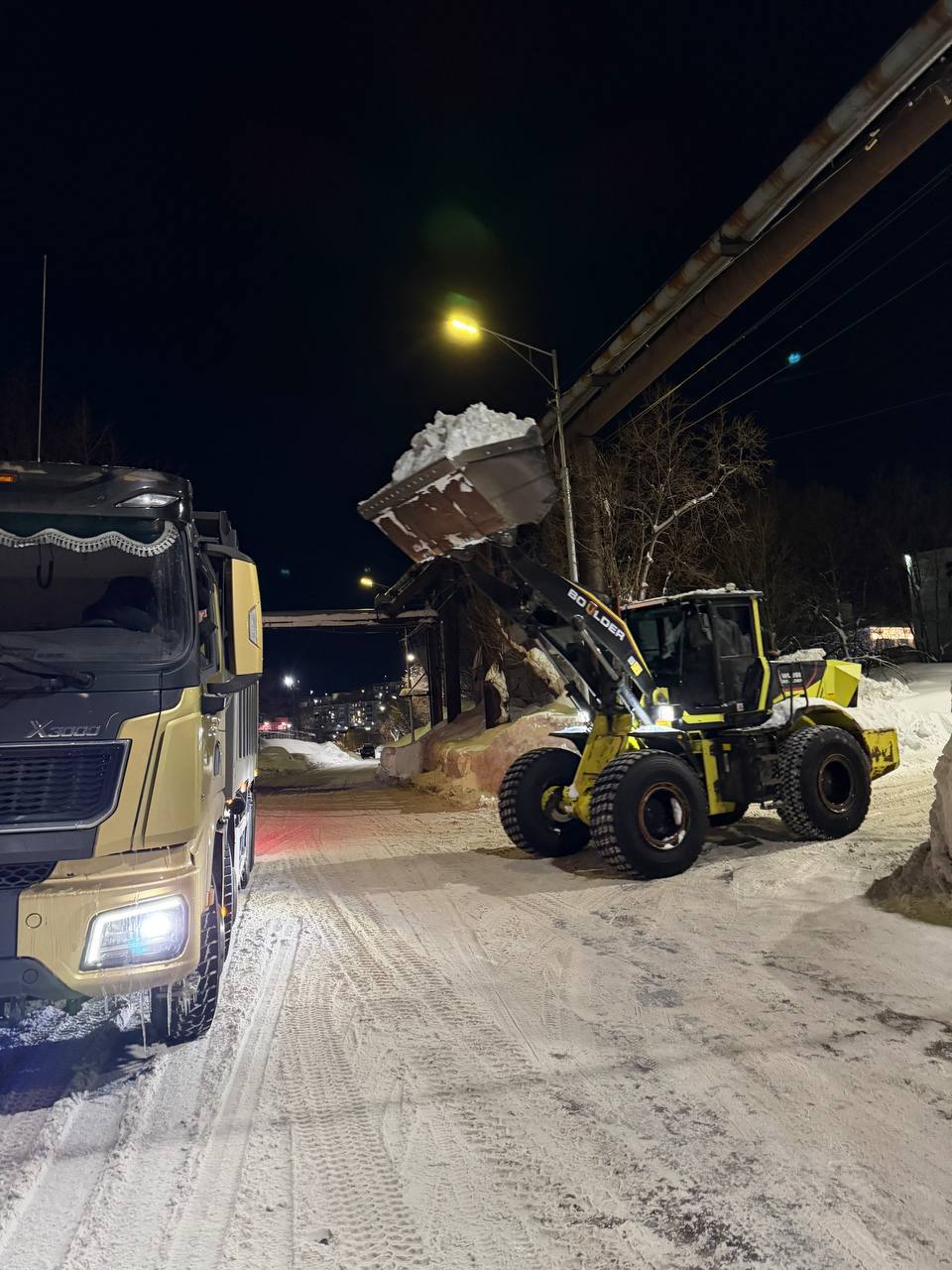 Дорожные службы в ночную смену продолжили работы по расчистки и вывозу снежных масс.