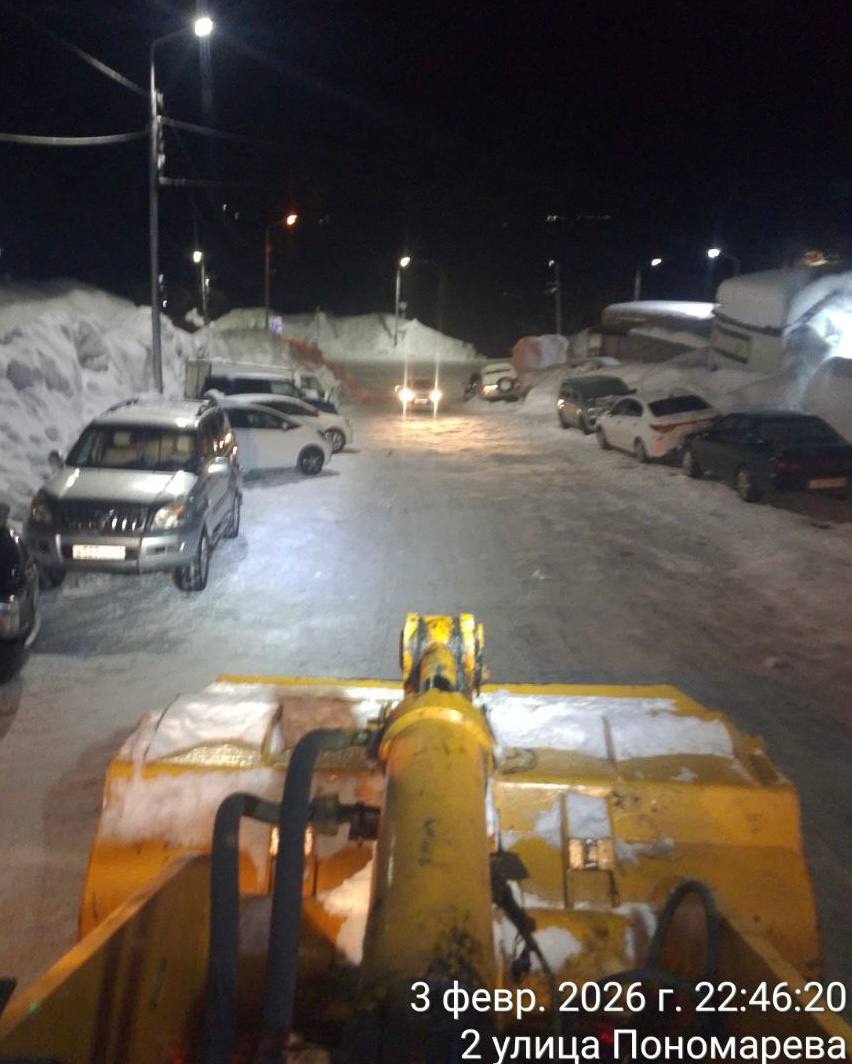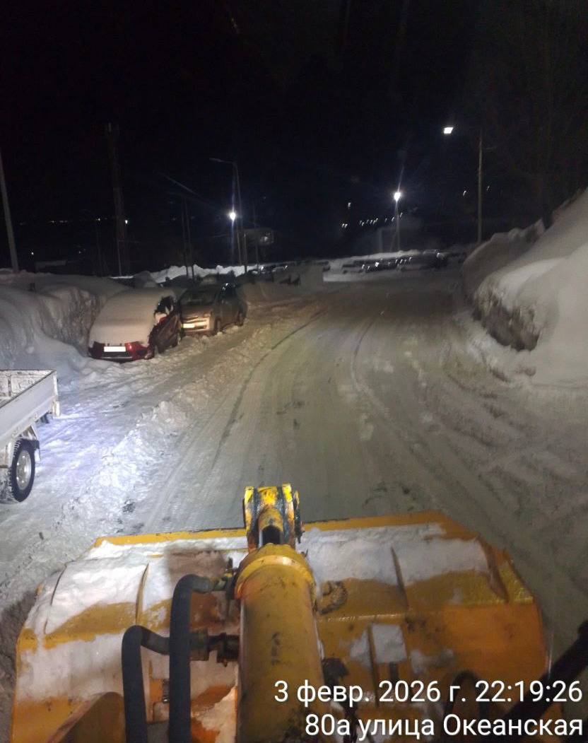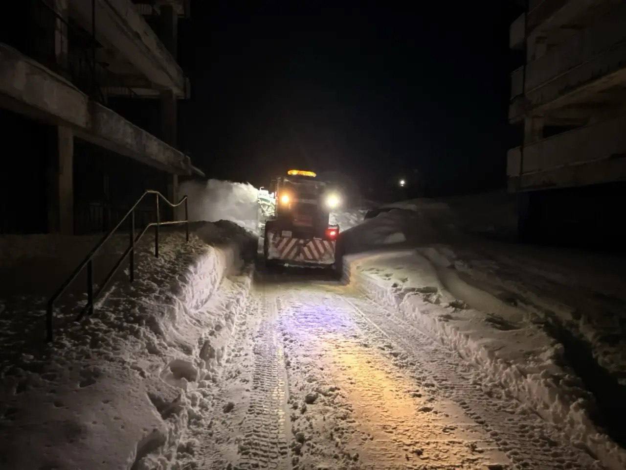 Дорожные службы в ночную смену продолжили работы по расчистки и вывозу снежных масс