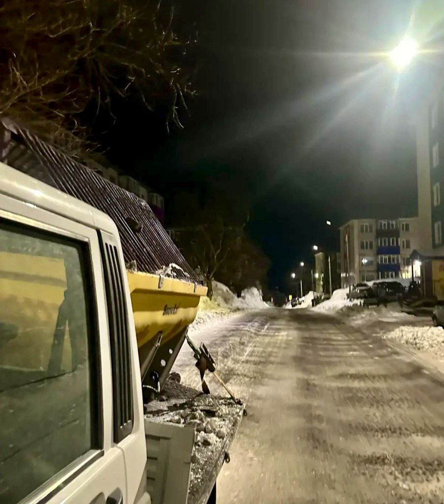 Дорожные службы расширяют и обрабатывают противогололедными материалами внутриквартальные и придомовые проезды. Снимают ледяной накат. Вывозят снег.