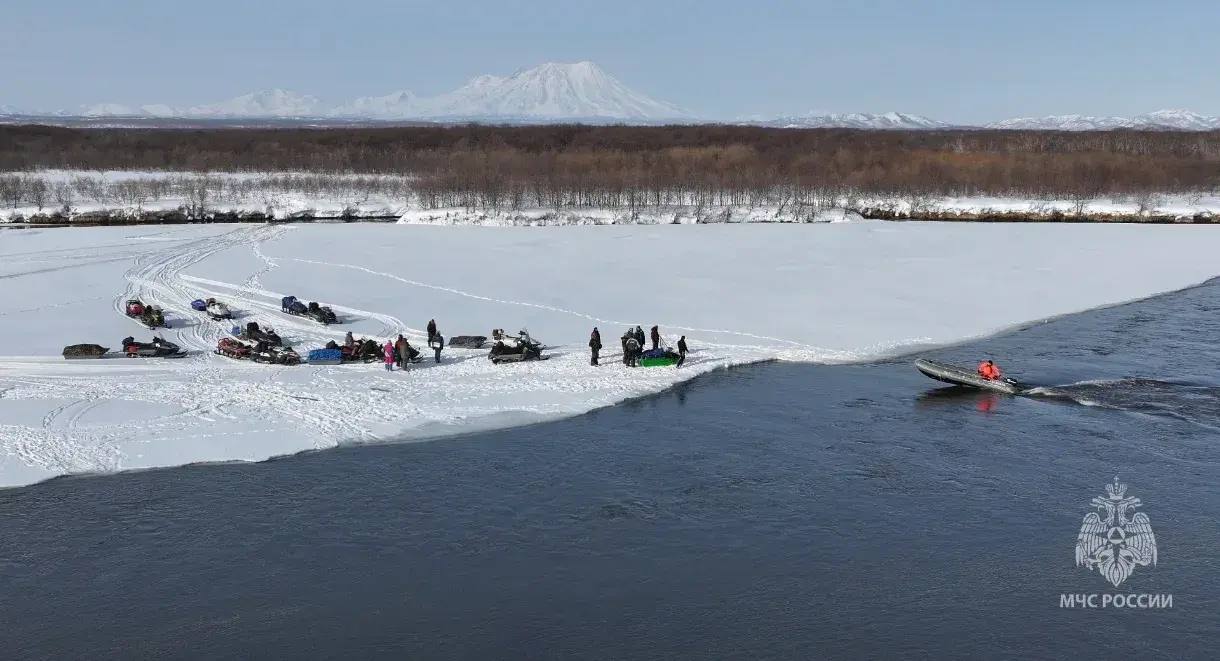 А теперь — о тех самых приключениях. На минувшей неделе в одно из них попали рыбакиснегоходчики, которые возвращались с озера Малый Калыгирь, где ловили навагу и корюшку. Пока они рыбачили, ледяной переезд через реку Налычево «на штанах» (место, крайнее перед устьем слияния проток) смыло — им пришлось просить о помощи.