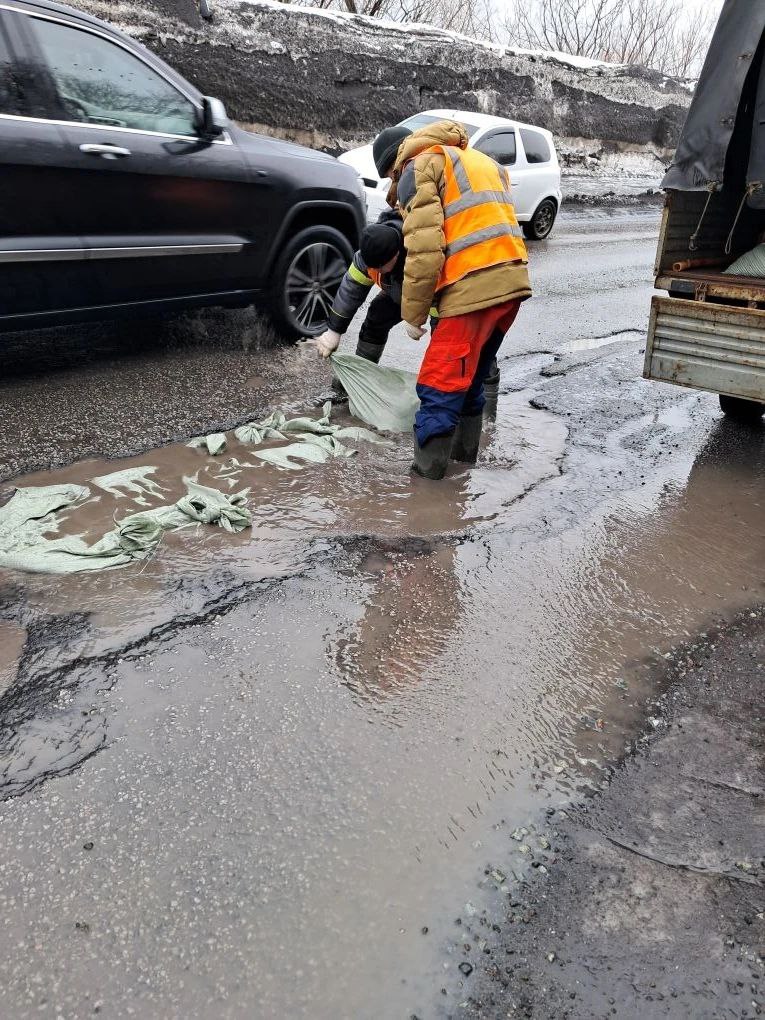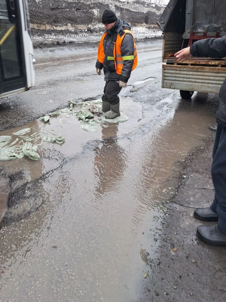 Как только дороги подсохнут, рабочие приступят к восстановлению дорожного полотна с использованием холодного асфальта.