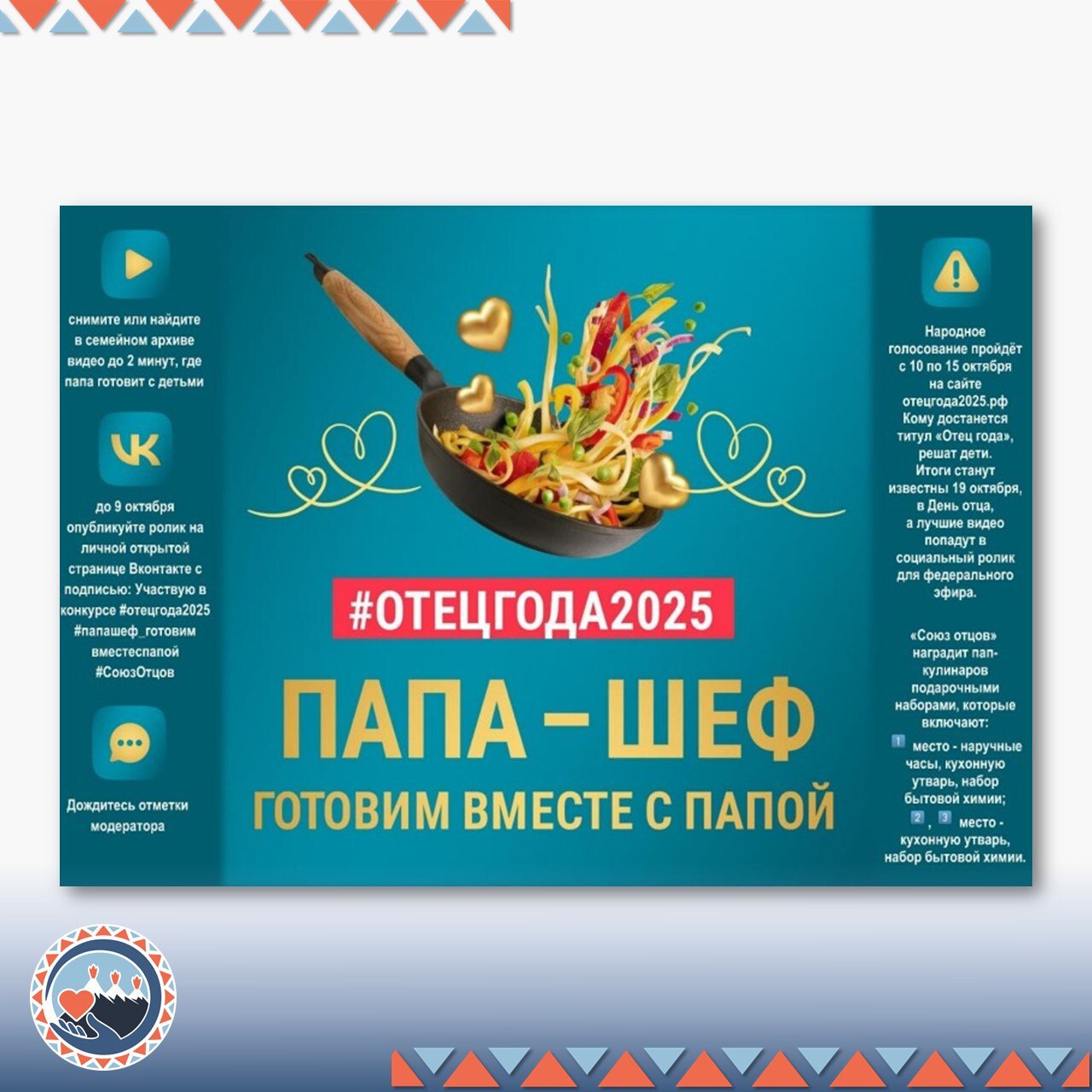 до 9 октября опубликуйте ролик на личной странице Вконтакте с подписью «Участвую в конкурсе #отецгода2025»;