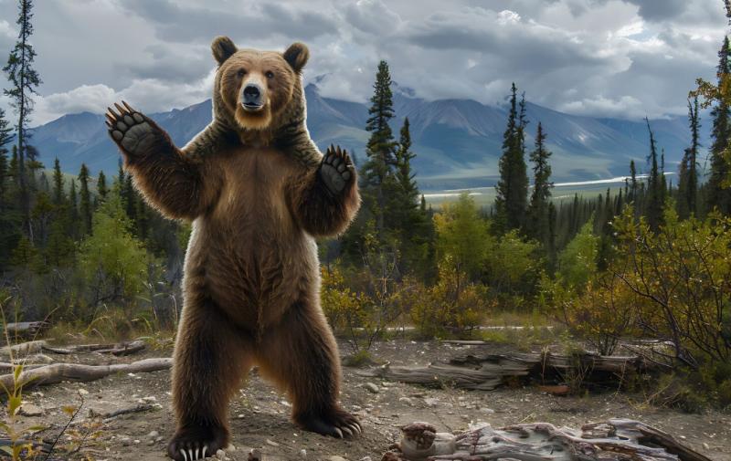 Жителей просят при встрече с медведем звонить 112 или 303-111 и сообщать точные данные о месте и времени происшествия.