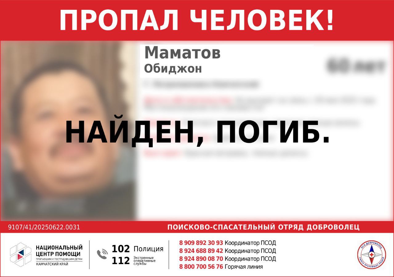 Волонтеры ПСО «Доброволец» сообщили о прекращении поисков 60-летнего Обиджона Маматова.