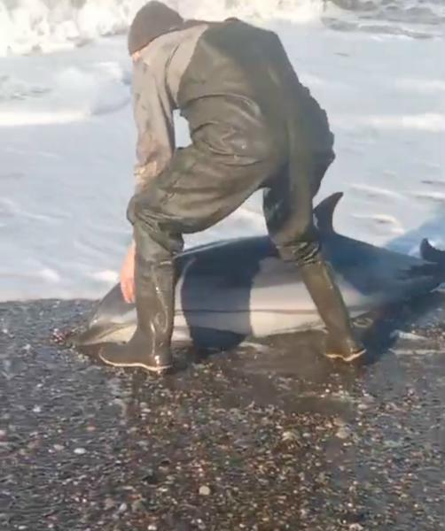 Дельфина-малыша спасли в Соболевском районе Камчатки