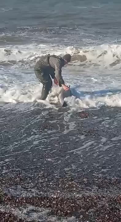 «Вновь Охотское море решило сделать "подарок" — оставило на своем берегу симпатичного малыша — дельфина».