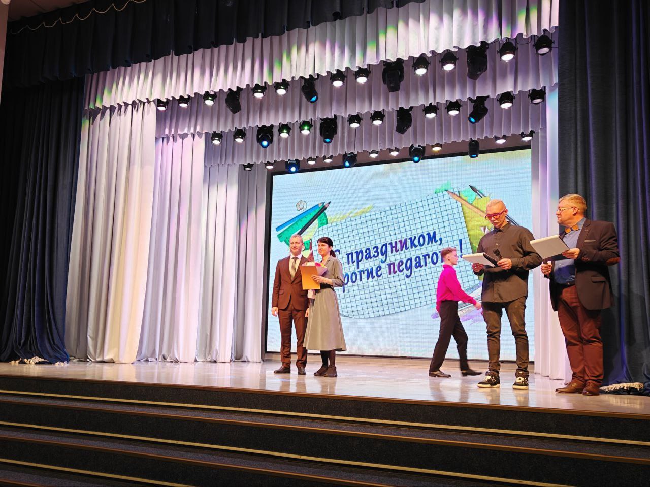 С приветственными словами к гостям и педагогам обратились врио заместителя Председателя Правительства Камчатского края Александра Лебедева, врио Министра образования Анастасия Захаровская, Глава Петропавловска-Камчатского Евгений Беляев, депутат Законодательного Собрания Камчатского края Владимир Агеев, которые вручили Почётные грамоты и Благодарности. Также прозвучало видеопоздравление от председателя Законодательного Собрания Ирины Унтиловой.