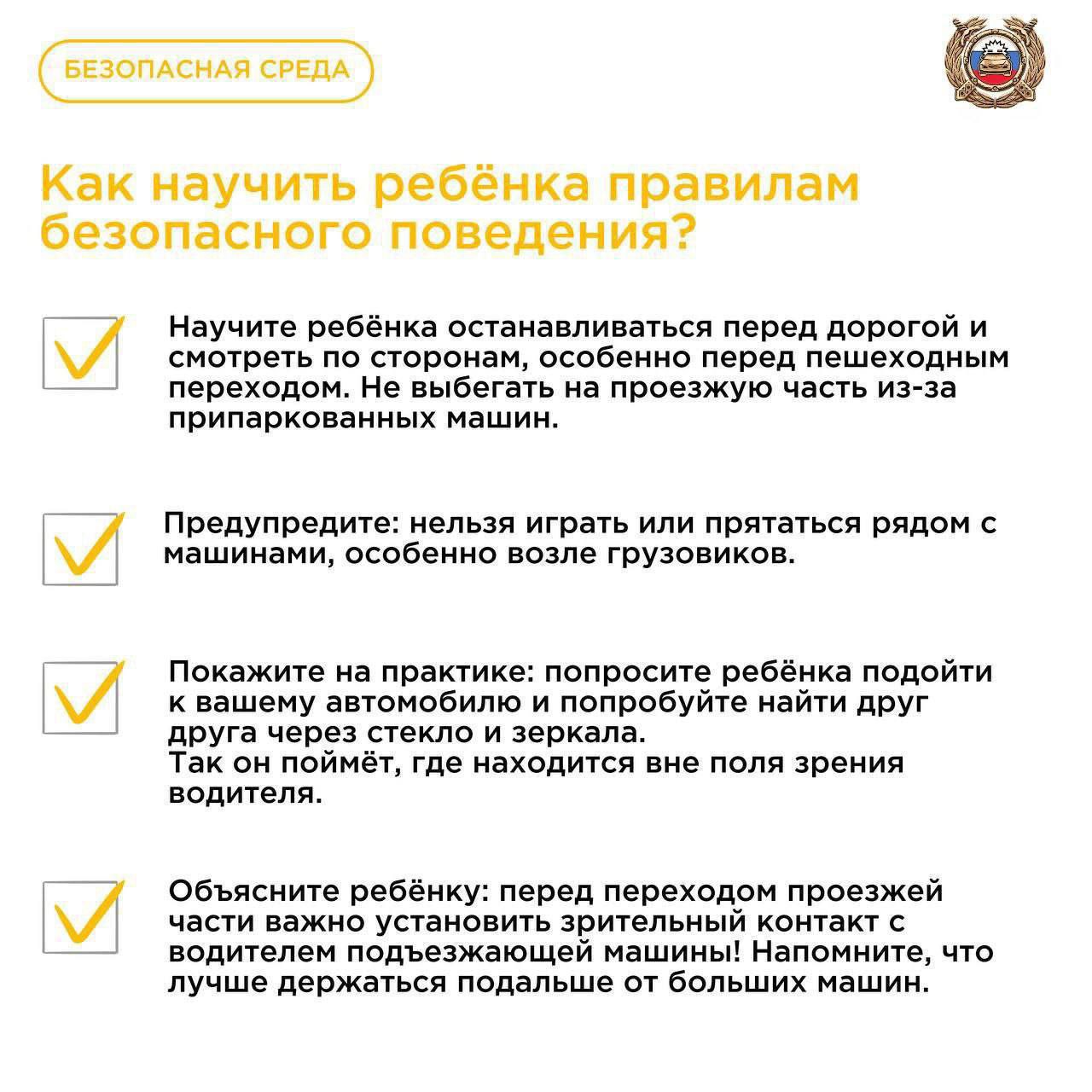 Помните, если автомобиль стоит с работающим двигателем, то не следует стоять за и перед ним, так как водитель может начать движение, не обратив внимание на обстановку вокруг автомобиля!