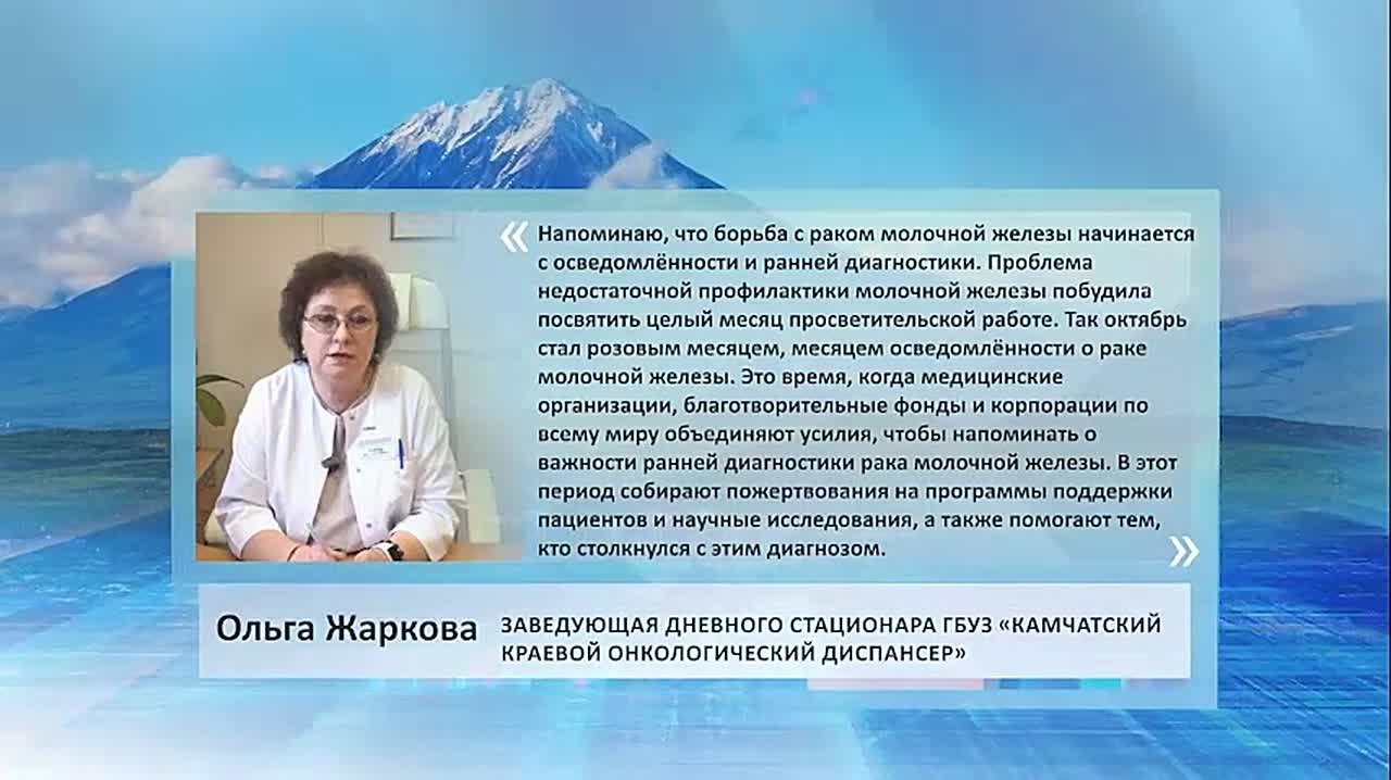 В это время медицинские организации и благотворительные фонды мира объединяются для продвижения ранней диагностики, сбора пожертвований на поддержку пациентов и научные исследования, а также оказания помощи тем, кто столкнулся с этим диагнозом. " — Ольга Жаркова, заведующая дневным стационаром ГБУЗ «Камчатский краевой онкологический диспансер».