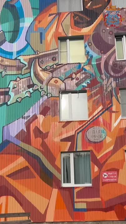 Фасады домов вокруг украшены муралами, которые были созданы в рамках фестиваля «Авача стрит-арт - 2025».