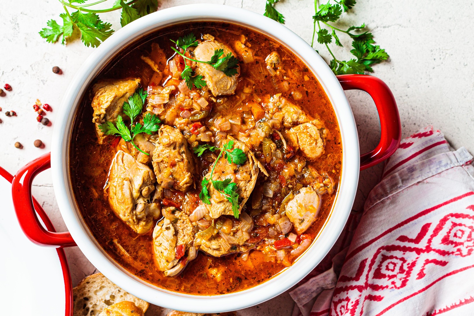 Чахохбили считается одним из самых известных блюд грузинской кухни. Приправы придают восхитительный аромат и вкус тушеной курице.
