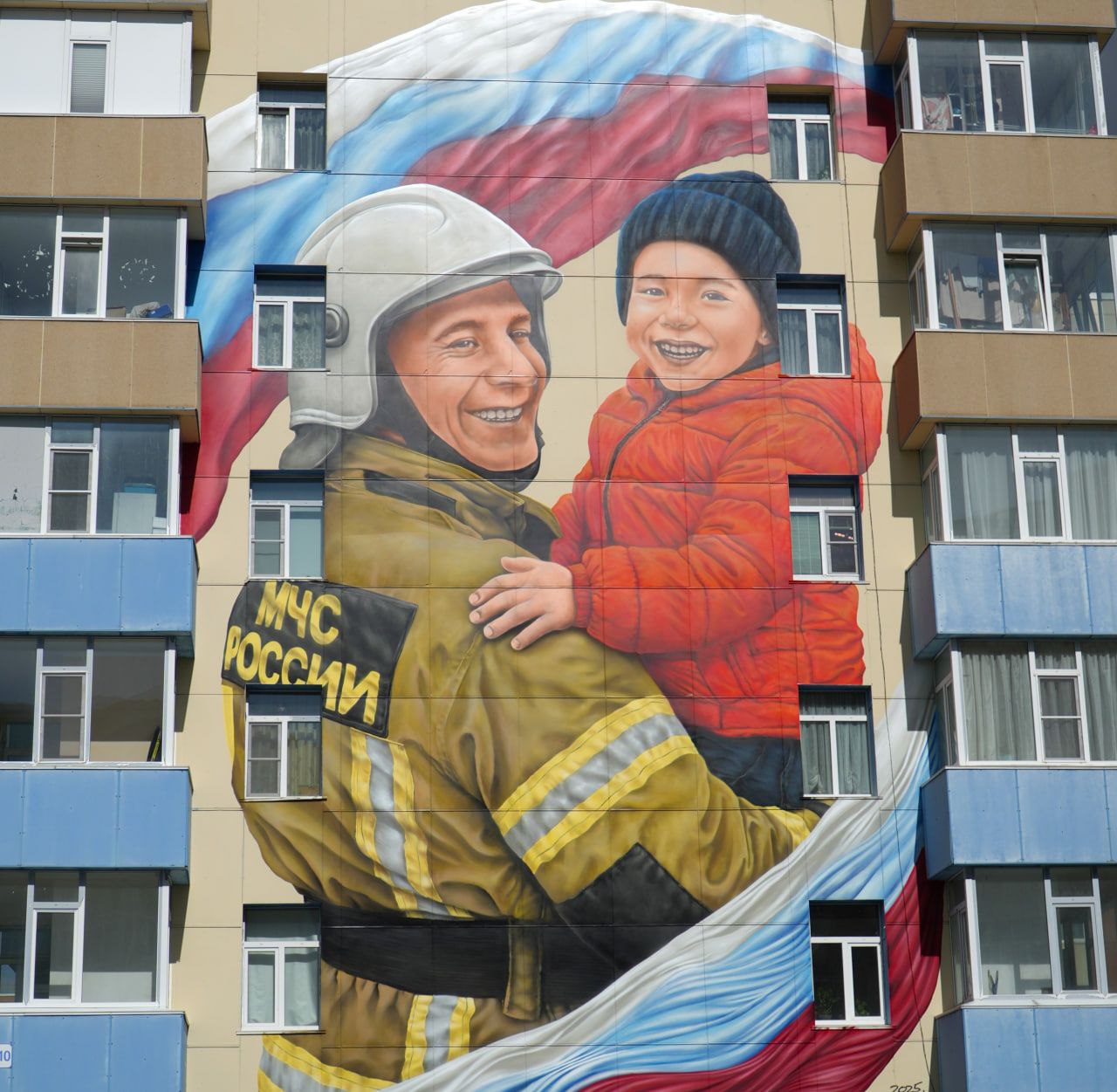 Второе место занял Илья Демченко из Подольска с муралом «Огнеборец» по адресу ул. Ларина, 22/10.