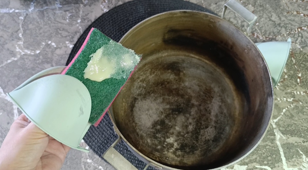 - Крупная соль: Насыпьте соль в кастрюлю, добавьте немного воды для образования пасты, оставьте на час или два и затем аккуратно потрите нагар.