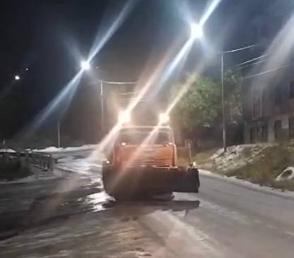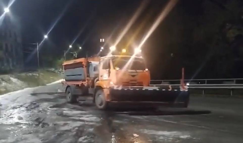 В ночное время проводились работы по обработке дорог противогололёдными материалами в Ленинском районе.
