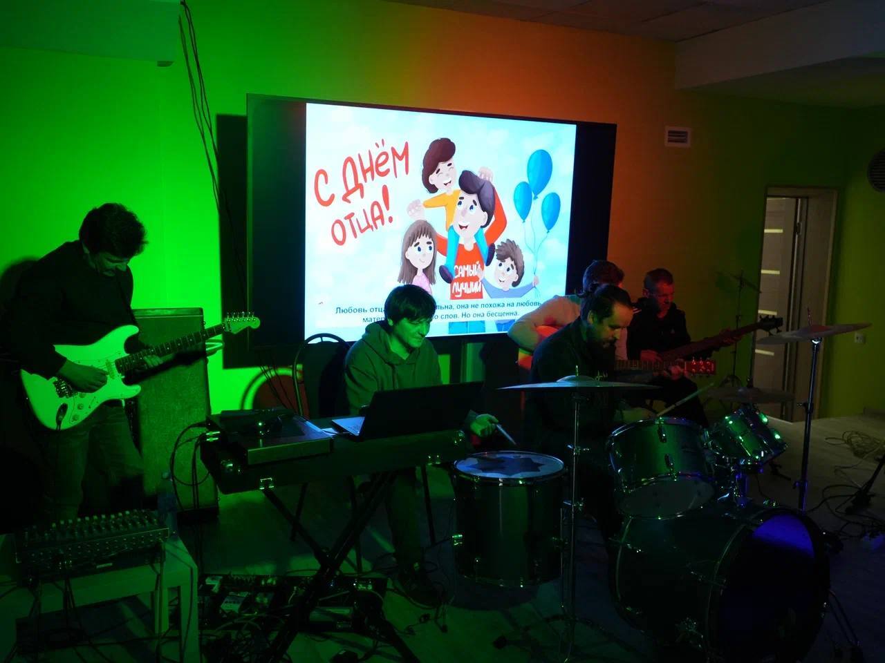 Завершился вечер концертом, в котором папы продемонстрировали свои музыкальные таланты, выступая в составе импровизированной рок-группы «Без сахара».