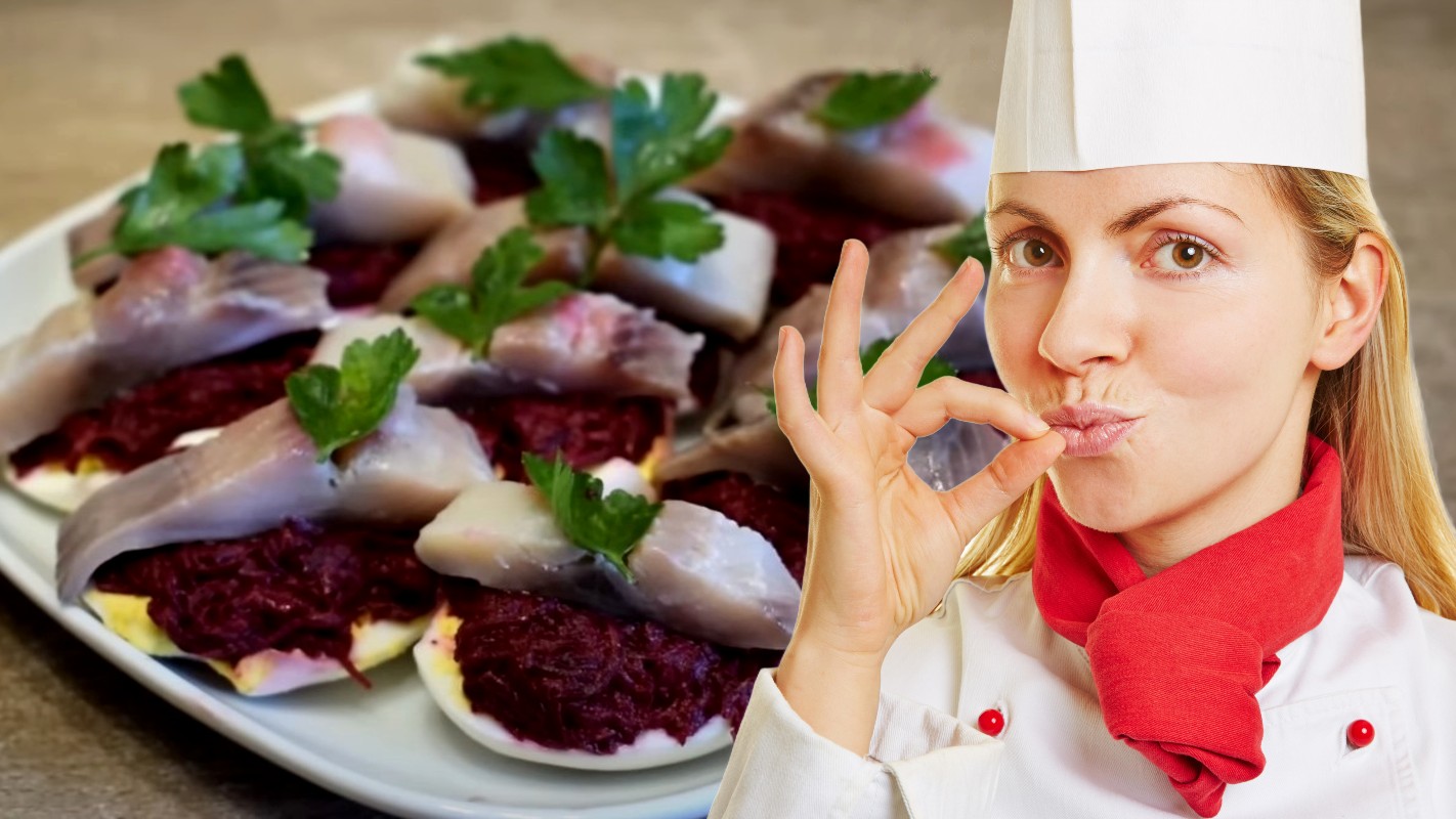 Приготовьте эту закуску из яиц, свеклы и рыбы. От нее в восторге останутся даже самые привередливые гости. Блюдо — аналог селедки под шубой, а на готовку уйдет в три раза меньше времени.