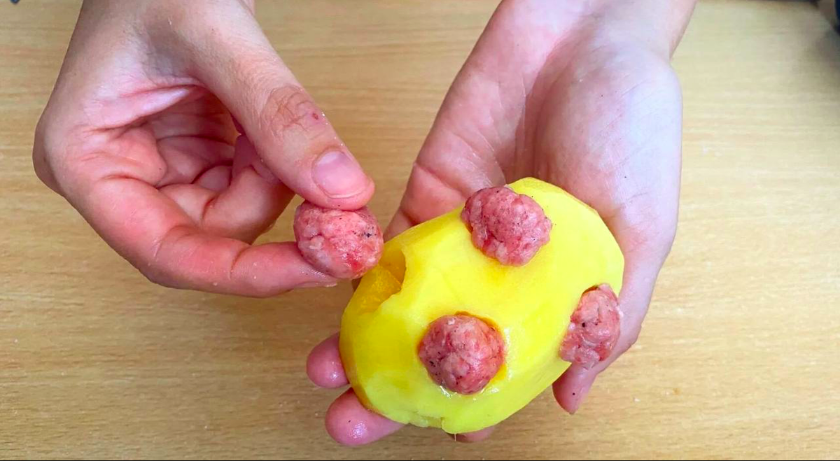Приготовление запеканки начинается с подготовки картофеля: его очищают и могут нарезать на части или оставлять целым, сделав в каждом клубне небольшие углубления. После этого переходим к созданию ароматного фарша, который станет сердцем блюда.